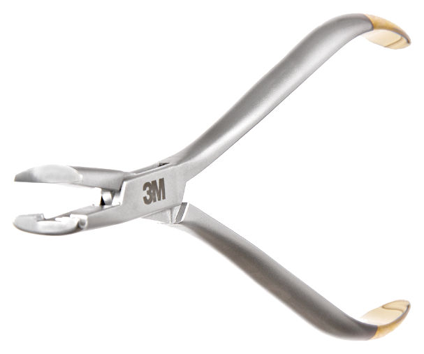 3M Unitek lingual ark telini bukkal tüp distaline 90° bükmek için cinch back pensesi. Uzun saplar, serrated uçlar; .012″–.018″ nitinol tel uyumlu.