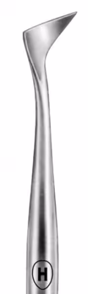 Karl Hammacher kök elevatörü. Paslanmaz çelik, otoklav sterilizasyonuna uygundur.