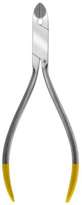 Karl Hammacher tungsten karbür uçlu ligatür kesme pensesi, sert tel için 0,4-0,6mm ve yumuşak tel için 0,56-0,70mm kesim kapasiteli, 120mm uzunluğunda sterilize edilebilir ortodontik kesicidir.