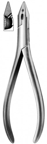 Karl Hammacher ince uçlu universal krampon pensesi, sert tel maks. 0,9mm bükme ve maks. 0,7mm kesme kapasiteli, 155mm sterilize edilebilir dental laboratuvar pensetir.