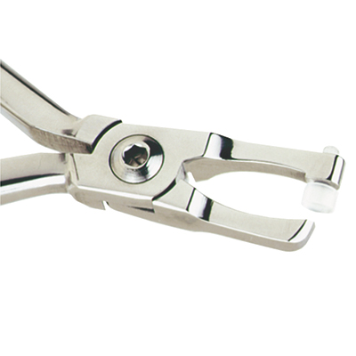 Arka bölge ortodontik band sökme pensesi. Çıkarılabilir kauçuk ped molar eklüzaline dayanır, uç bandın altına girer. Kauçuk ped çıkarılarak otoklav sterilizasyonu yapılabilir.