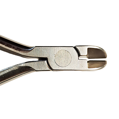 Sert ortodontik teller için özel tasarlanmış tungsten karbür uçlu tel kesici. 0,022″×0,028″ kalınlığına kadar sert tel kesimine uygun.
