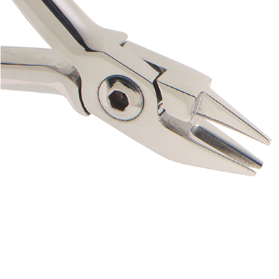 Üç çeneli ortodontik tel büküm pensi. Kademeli konik uç tasarımı 0,030″ çapa kadar tel bükmeye olanak tanır.